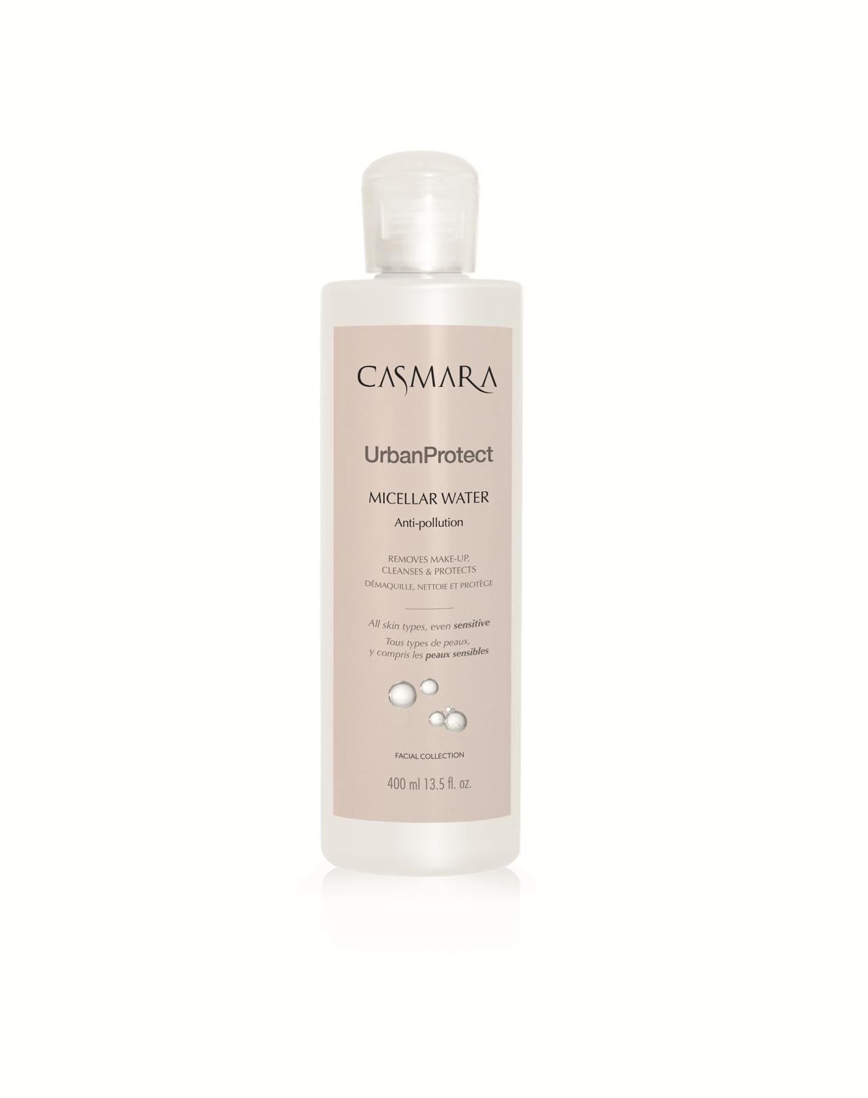 El agua Micelar UrbanProtect contiene un innovador activo antipolución que defiende el rostro creando un escudo que refuerza la barrera protectora de la piel, al mismo tiempo, las MICELAS actúan como imanes atrapando células muertas superficiales, partículas contaminantes, maquillaje y exceso de sebo.